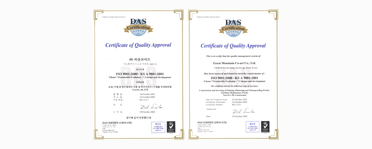 우리회사는 2003년 ISO 9001:2000 품질경영시스템 인증을받음으로써 대내적으로는 실패비용의 절감으로 이익 증대와 사내 의사소통 원활화 및 부서간 업무중복에 따른 업무 비능률 해소, 고객만족에 따른 수주/영업활동 활성화등의 효과를기대하고있으며,